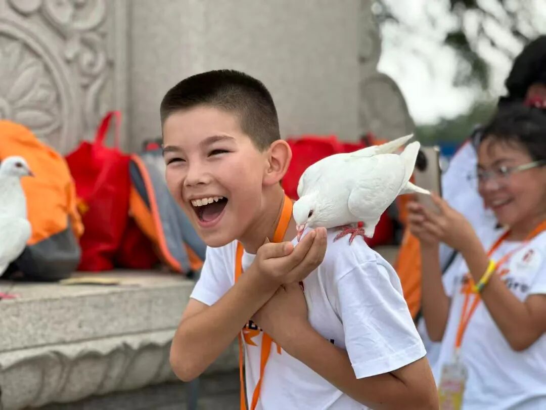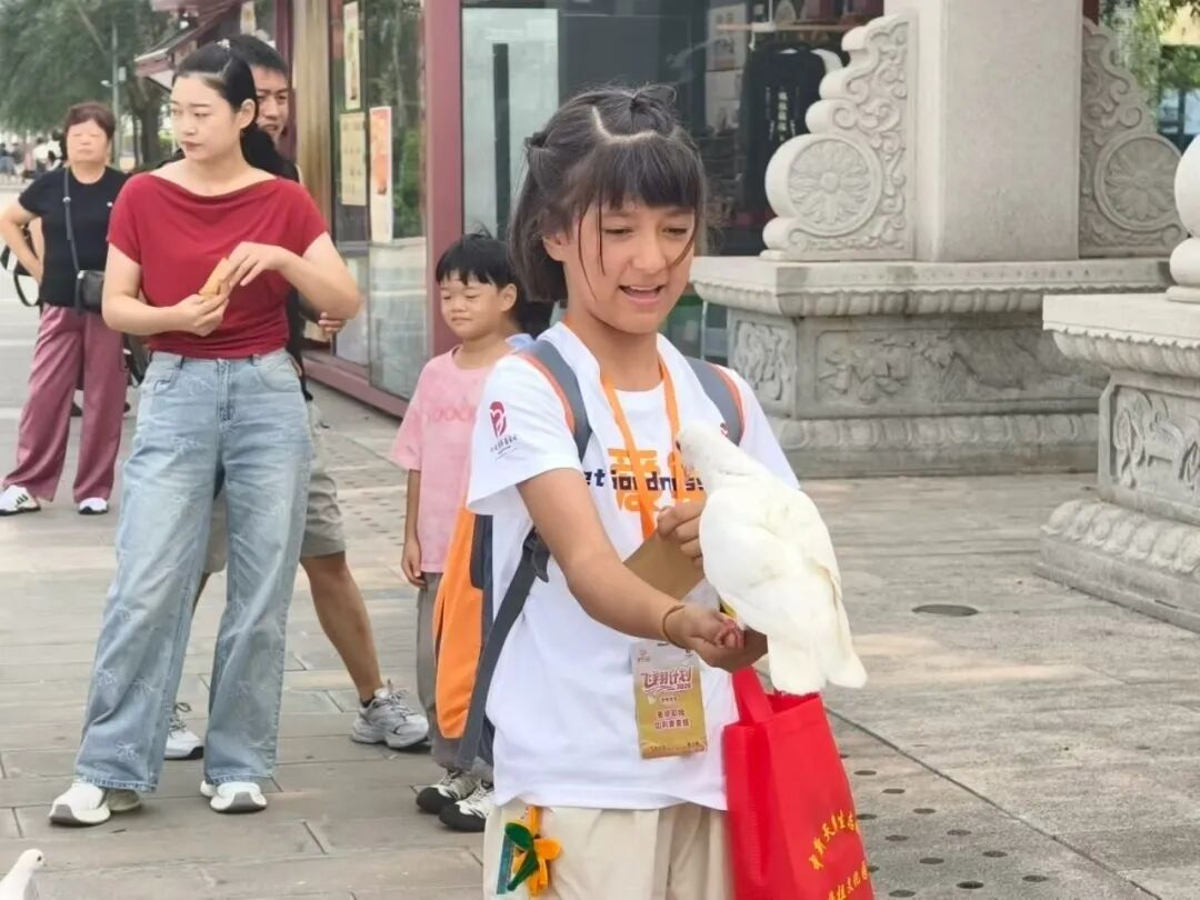 孩子们在妈祖文化园受到了最高规格的接待,导游姐姐全程陪同,工作人员各处守候,素面水果食欲大开,温馨礼物送入手中。整个过程无一不体现着妈祖“立德、行善、大爱”精神,园区负责人王子升先生对孩子们的殷切寄语仍萦绕耳畔。出发下一站前,孩子们又和白鸽互动,一张张画面定格在美好瞬间。