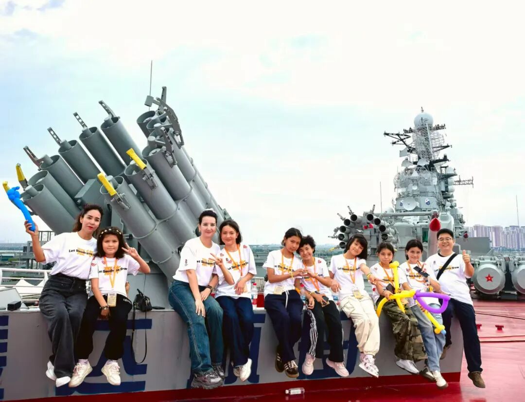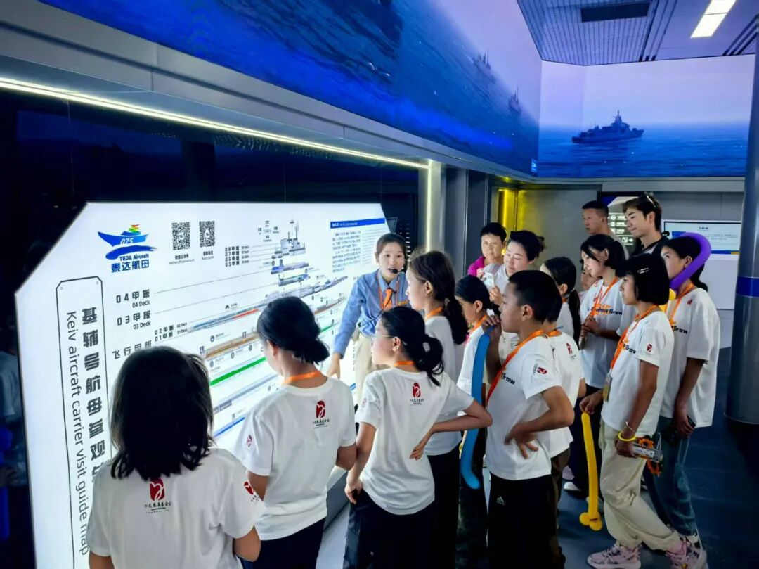 初见航母的一刻,孩子们眼神中充满了震惊,钢铁长城是多么的雄伟,如今,我国军事力量日趋强大,对着航母,孩子们喊出那句阅兵解说词:东风5C,打击范围覆盖全球。这就是中国实力。