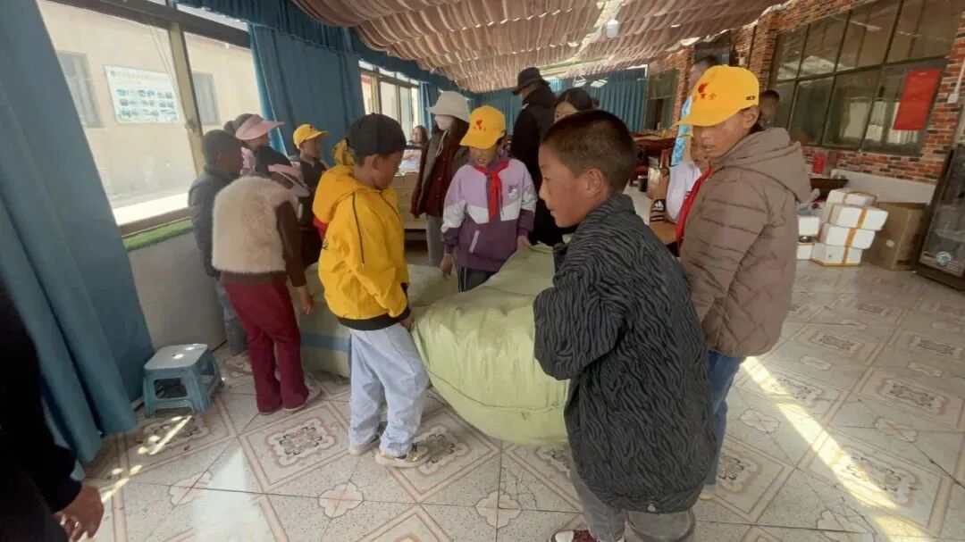 当我们一大早赶到塔尔玛乡小学的时候,孩子们早已来到校园,正齐心协力搬运着藏袍校服。那一张张充满朝气的脸庞,尽管稍显稚嫩,却透露出无比的坚毅和团结。